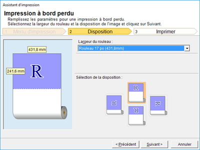 Sélectionnez la Largeur du rouleau paramétrée pour l'imprimante.