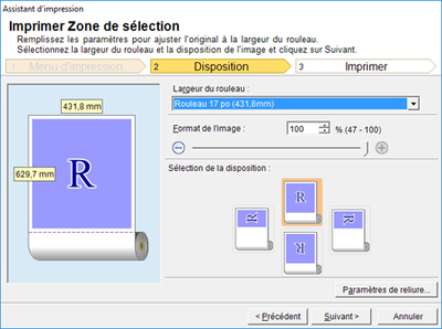 Sélectionnez la Largeur du rouleau paramétrée dans l'imprimante.
