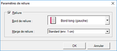 Ouvrez la boîte de dialogue Paramètres de reliure.