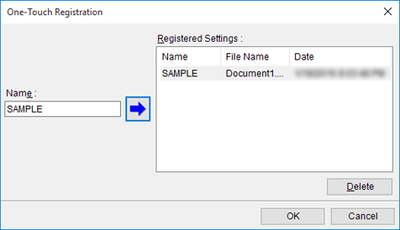 If you are going to print multiple times using the same setting, you can select One-Touch Registration. Registered settings can be recalled from Print Using Registered Settings.