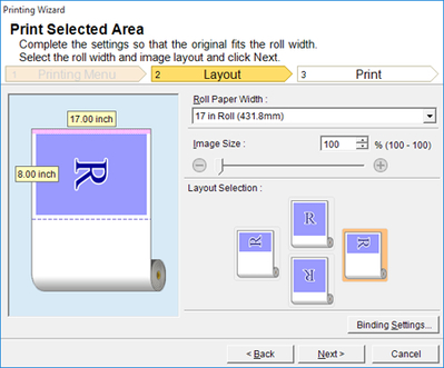 Configure the settings up to Layout Selection in the Layout screen in Print Entire Sheet or Print Selected Area.