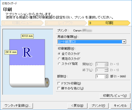 [印刷ウィザード]ダイアログボックスが表示されます。