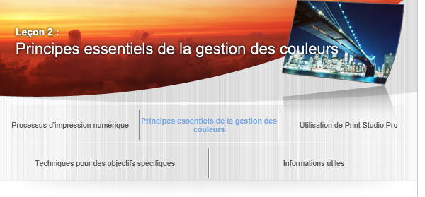 Par exemple, lorsque la même image est affichée sur deux types de moniteur, les tonalités des couleurs peuvent apparaître différemment d'un moniteur à l'autre. L'une des raisons est la variété des espaces colorimétriques.