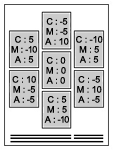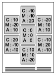 Imprima un patrón para comprobar el balance de color, el brillo y el contraste de la imagen.