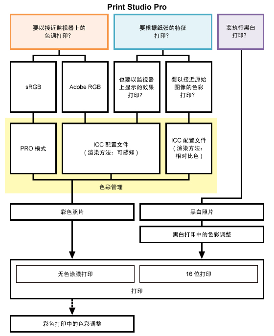 根据打印机,可以选择的色彩管理项目可能有所不同。