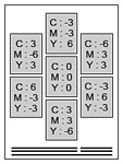 Print a pattern with which you can check the color balance, brightness and contrast of the image.