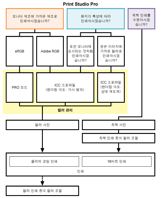 프린터에 따라 선택할 수 있는 컬러 관리 항목이 다릅니다.