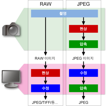 사진용 파일 형식으로 널리 사용되는 JPEG 형식 이외에도 일부 디지털 카메라는 RAW 형식으로 촬영하는 것을 지원합니다.