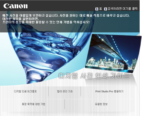예전 사진을 아름답게 보관하고 싶습니다. 사진을 원하는 대로 예술 작품으로 변화시키고 싶습니다. 이러한 희망을 실현하려면, 프린터의 성능을 최대한 활용할 수 있는 인쇄 기법을 익히십시오!
