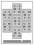 Print a pattern with which you can check the color balance, brightness and contrast of the image.
