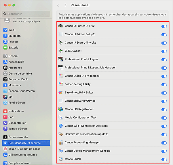 Activez les applications qui doivent détecter les périphériques sur le réseau local.