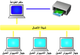 في حالة استخدام العديد من أجهزة الكمبيوتر في بيئة الشبكة، يمكنك مشاركة الطابعة التي تم توصيلها بجهاز كمبيوتر واحد مع أجهزة كمبيوتر أخرى.