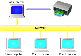 Wanneer meerdere computers in een netwerkomgeving worden gebruikt, kunt u de printer aansluiten op één computer en de printer vanaf de andere computers in het netwerk gebruiken.
