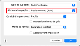 Pour Alimentation papier, sélectionnez Papier rouleau (Auto).