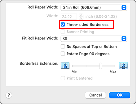 Tale situazione può essere migliorata selezionando Impost. dettag. carta (Advanced Paper Settings) e impostando Tempo asciug. (tra pag.) (Dry Time (Between Pages)) a un valore più alto. - La carta in rotoli riportata di seguito supporta la stampa senza bordo.