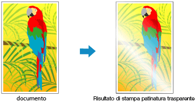 La stampante imposta automaticamente le aree a cui applicare la patinatura trasparente e determina se è necessario eseguire la patinatura trasparente.