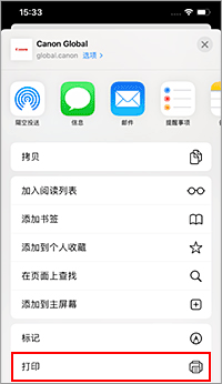 从iOS 12的Safari打印时显示以下屏幕。 根据设备或应用程序,屏幕会有所不同。