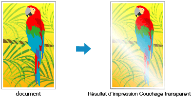 Lors de l'exécution de l'impression, l'effet de couchage transparent qui a été défini est ajouté lorsque le document est imprimé.