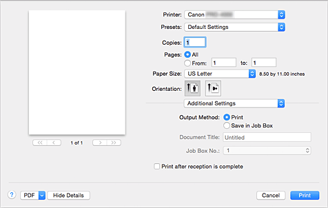- Salvare il processo di stampa sul disco rigido della stampante. Quando si seleziona Salva in casella lavoro (Save in Job Box), selezionare la singola casella in cui salvare dall'elenco N. casella lavoro (Job Box No.).