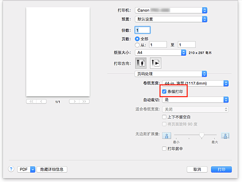 选中条幅打印复选框。