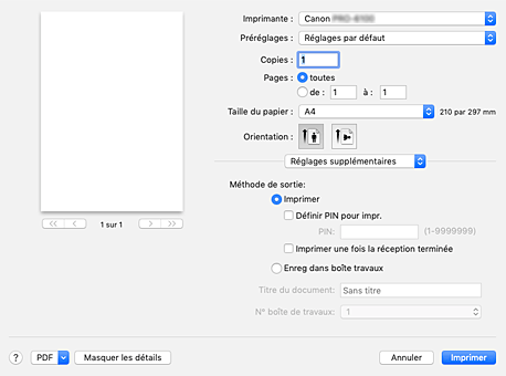 Ce paramètre peut être défini lorsque vous sélectionnez Imprimer.