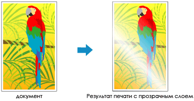 Принтер автоматически устанавливает, где находятся области прозрачности и нужно ли применять прозрачный слой.