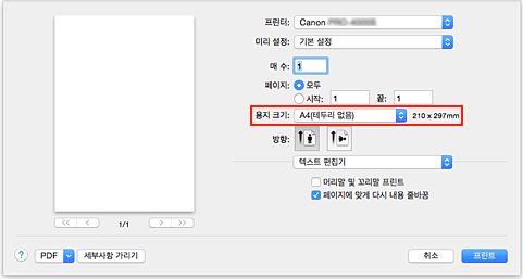 1. 전체 면에 테두리 없이 인쇄하기 위한 용지 크기 선택