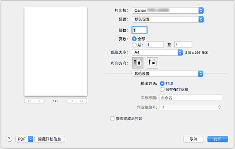 - 将打印作业保存至打印机的硬盘中。 选择保存在作业箱时,请从作业箱编号列表中选择一个单独的作业箱编号作进行保存。