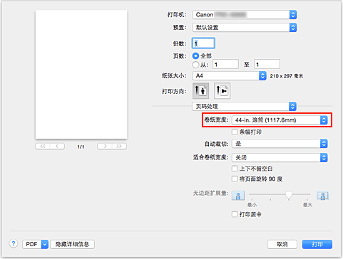 将卷纸宽度设置为装入打印机的卷纸宽度。