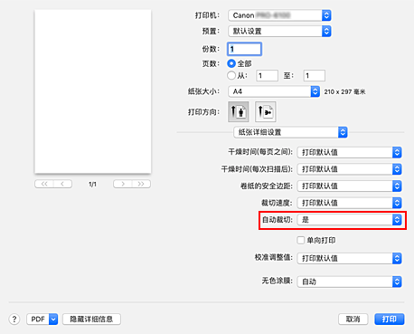 打印时,会在打印完成后自动裁切卷纸或打印裁切线。