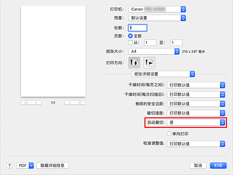 打印时,会在打印完成后自动裁切卷纸或打印裁切线。