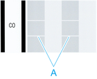 - Because Chroma Optimizer (CO) ink is colorless, it is printed over a black ink pattern. Check whether the Chroma Optimizer (CO) ink pattern contains horizontal streaks (A) in the dark gray area.