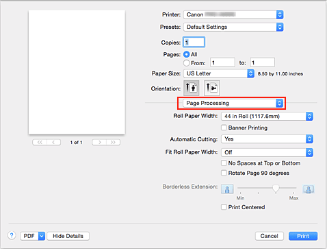 9. Seleccione Procesamiento de página (Page Processing) en el menú desplegable.