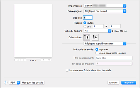 Ce paramètre peut être défini lorsque vous sélectionnez Imprimer.