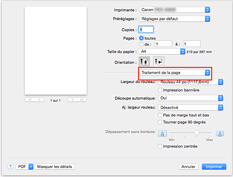 Si vous sélectionnez un papier rouleau dans Alimentation papier, renseignez la largeur du papier rouleau chargé dans l'imprimante sous Largeur du rouleau.