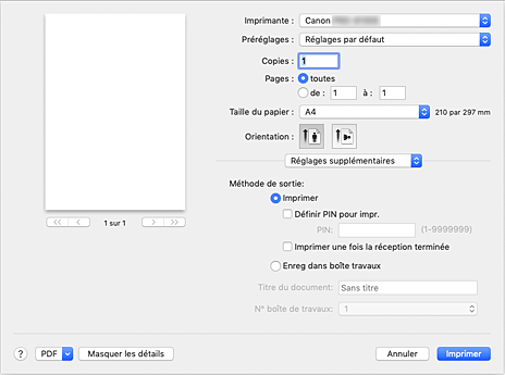 Ce paramètre peut être défini lorsque vous sélectionnez Imprimer.