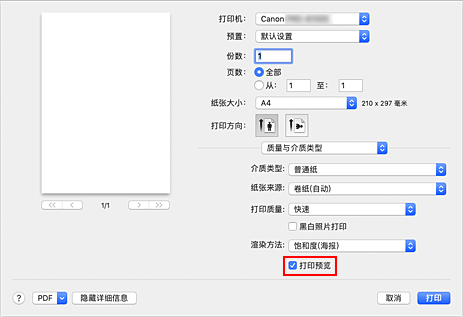 执行打印时,启动Canon imagePROGRAF Preview以显示打印效果。