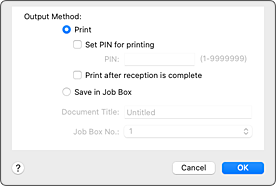 Guarde el trabajo de impresión en el disco duro de la impresora. Al seleccionar Guardar en caja de trab. (Save in Job Box), seleccione la caja individual en la que desea guardar el trabajo en la lista N.º caja de trabajo (Job Box No.).