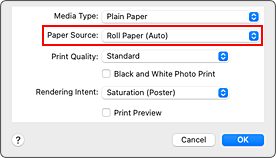 Em Origem do Papel (Paper Source), selecione Papel em rolo (Auto.) (Roll Paper (Auto)).