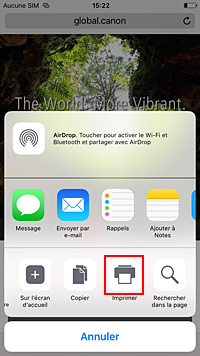 L'écran suivant s'affiche lorsque vous imprimez à partir de Safari pour iOS 10. L'écran peut varier en fonction des périphériques ou des applications.