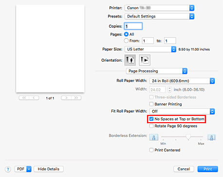 Selezionare Carta in rotoli (Roll Paper) per Alimentazione carta (Paper Source).