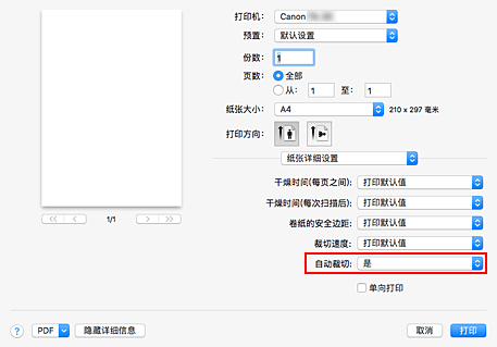 打印时,会在打印完成后自动裁切卷纸或打印裁切线。