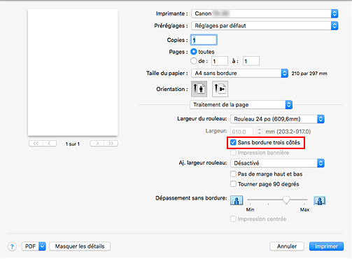 Cochez l'option Sans bordure trois côtés (Three-sided Borderless)