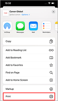 Importante- Algunas aplicaciones no admiten AirPrint, de modo que es posible que no se muestre Opciones de impresora (Printer Options). Si alguna aplicación no le permite usar las opciones de impresora, no podrá imprimir desde esa aplicación.