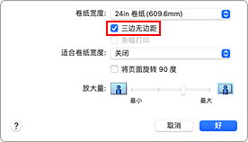 如果纸张尺寸与卷纸宽度不匹配,则可以执行三边对齐最小边距打印。