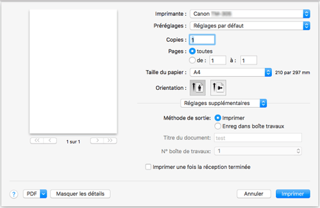Ce paramètre peut être défini lorsque vous sélectionnez Imprimer.