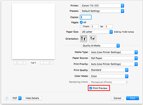Selezionare la casella di controllo Antepr. di stampa (Print Preview).