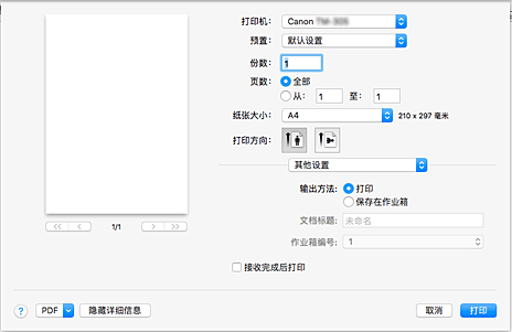 - 将打印作业保存至打印机的硬盘中。 选择保存在作业箱时,请从作业箱编号列表中选择一个单独的作业箱编号作进行保存。