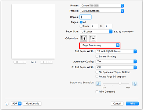 10. Selecione Processamento de página (Page Processing) no menu pop-up