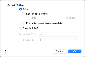 Guarde el trabajo de impresión en el disco duro de la impresora. Al seleccionar Guardar en caja de trab. (Save in Job Box), seleccione la caja individual en la que desea guardar el trabajo en la lista N.º caja de trabajo (Job Box No.).